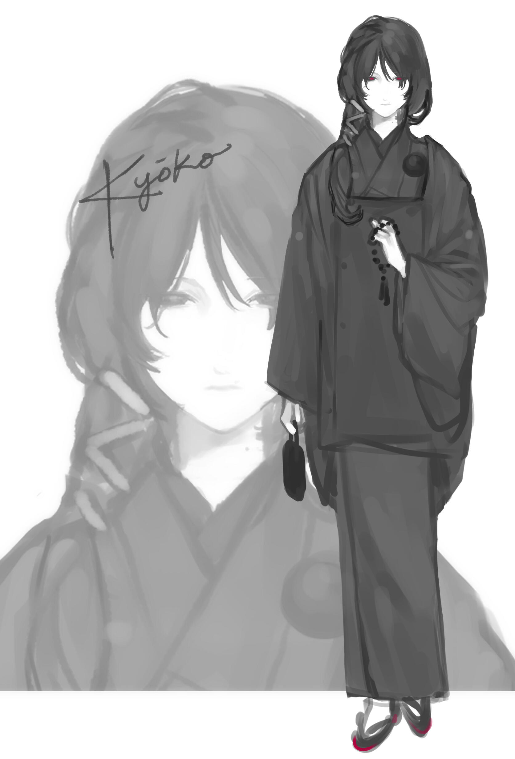 - Kyoko cũng có tính cách trầm lặng như vậy, nhưng có xu hướng quan tâm tới nhiều thứ xung quanh hơn chị mình. Cô không có các hành động quan tâm, chiều chuộng lại chị mà thường cư xử trẻ con và láu cá để trêu chị.